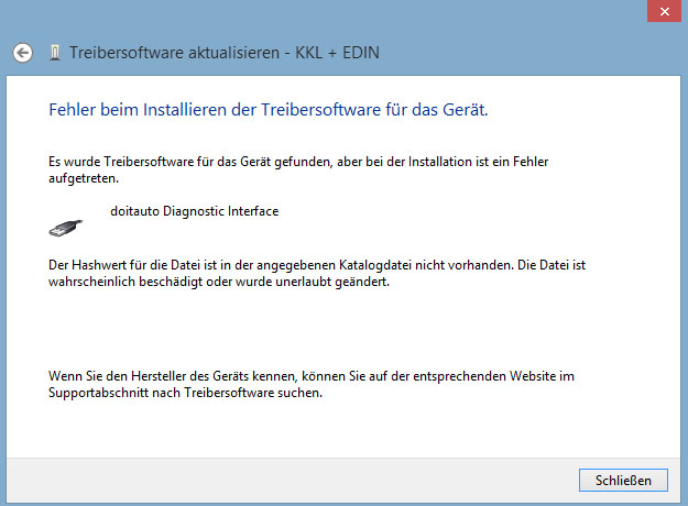 ich wollte mein Diagnosekabel installieren, jedoch bekomme ich immer nur folgende Fehlermeldung: