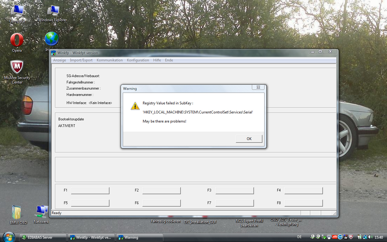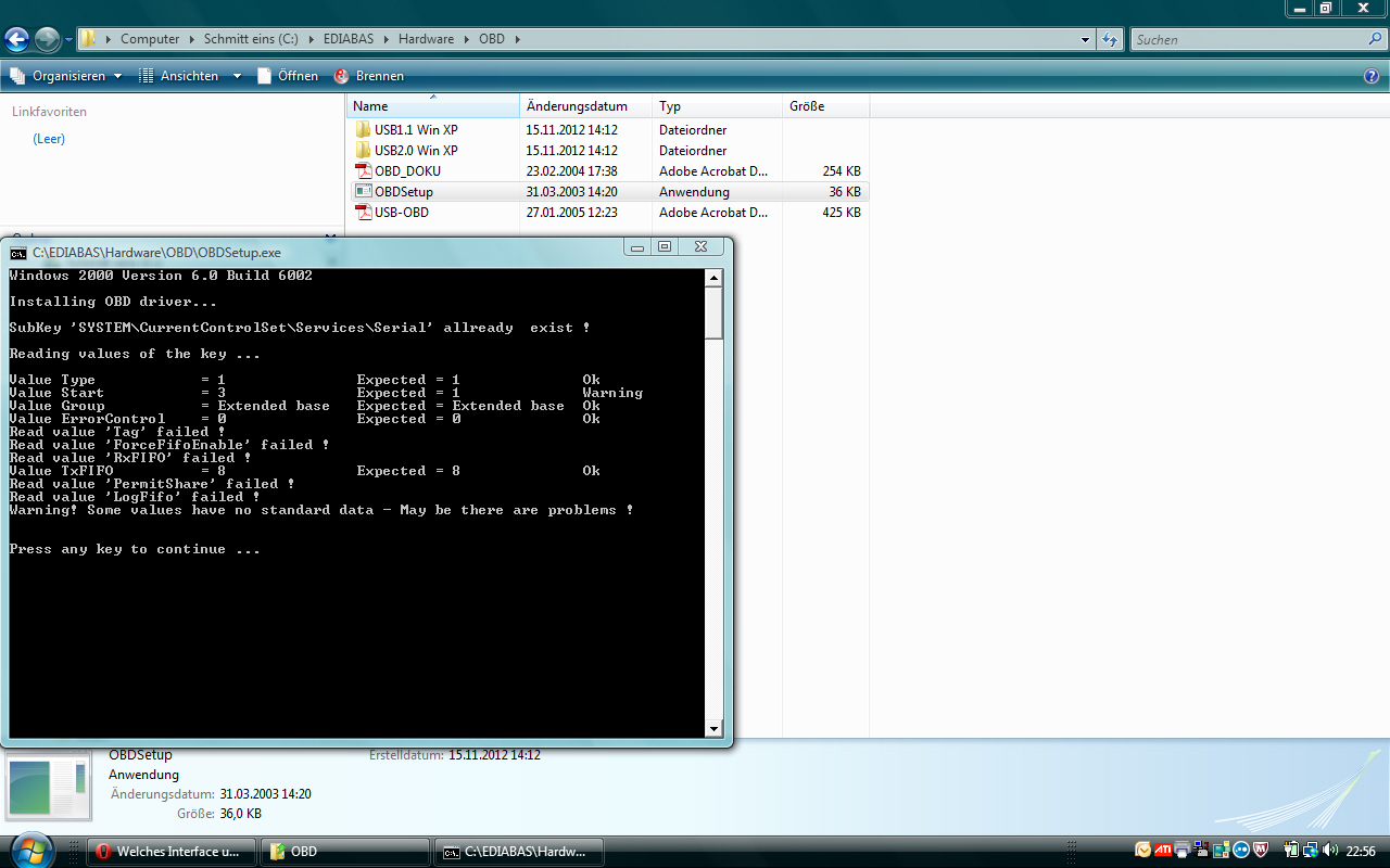 Oder beim ausführen von OBD Setup öffnet sich ein DOS Fenster hier muss alles auf OK stehen. Und bei dir müsste hier ein fehler drin sein. Du musst dann das ganze in der Registry ändern.