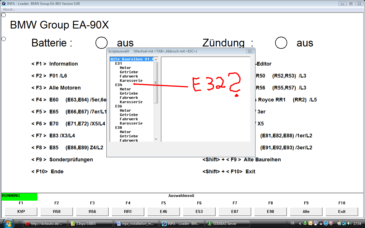 Es gibt auch die Anzeige Batterie und Zündung an, nur kann ich meinen E32 nicht auswählen.