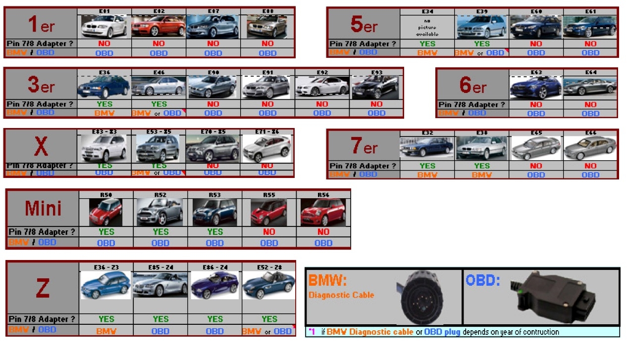 Vor 2 Jahren kaufte ich auch ein K + DCAN Interface und verwendet es mit einem Adapter (= verbundenen Kontakte 7 und 8 ) oder ohne Adapter, siehe "bmw_interfaces" Tabelle im Anhang. Eine grundlegende Änderung kommt im März 2007. Platz Pins 16-1-7(TxD)-9(TD) sind Pins 16-1-14(CAN-L)-6(CAN-H)-9 (TD) benutzt. Bitte Verschaltung Motor_N52_ab_2005_09_bis_2007_03.bmp und Motor_N53_ab_2007_03.bmp in Anhang vergleichen. Das gleiche ist bei E85_ab_2007_03.bmp, und E89/Z4 's ist Nachfolger. Es ist notwendig in WDS suchen http://www.bmw-planet.com/diagrams/relea…60e61/index.htm .