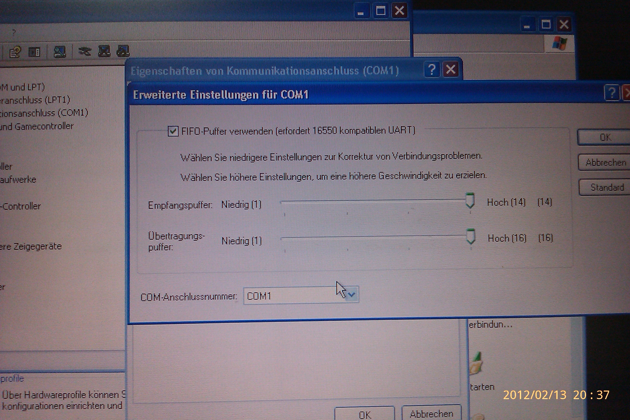 Grund 3: Für den COM1 ist über den Gerätemanager der FIFO-Puffer disabled.
